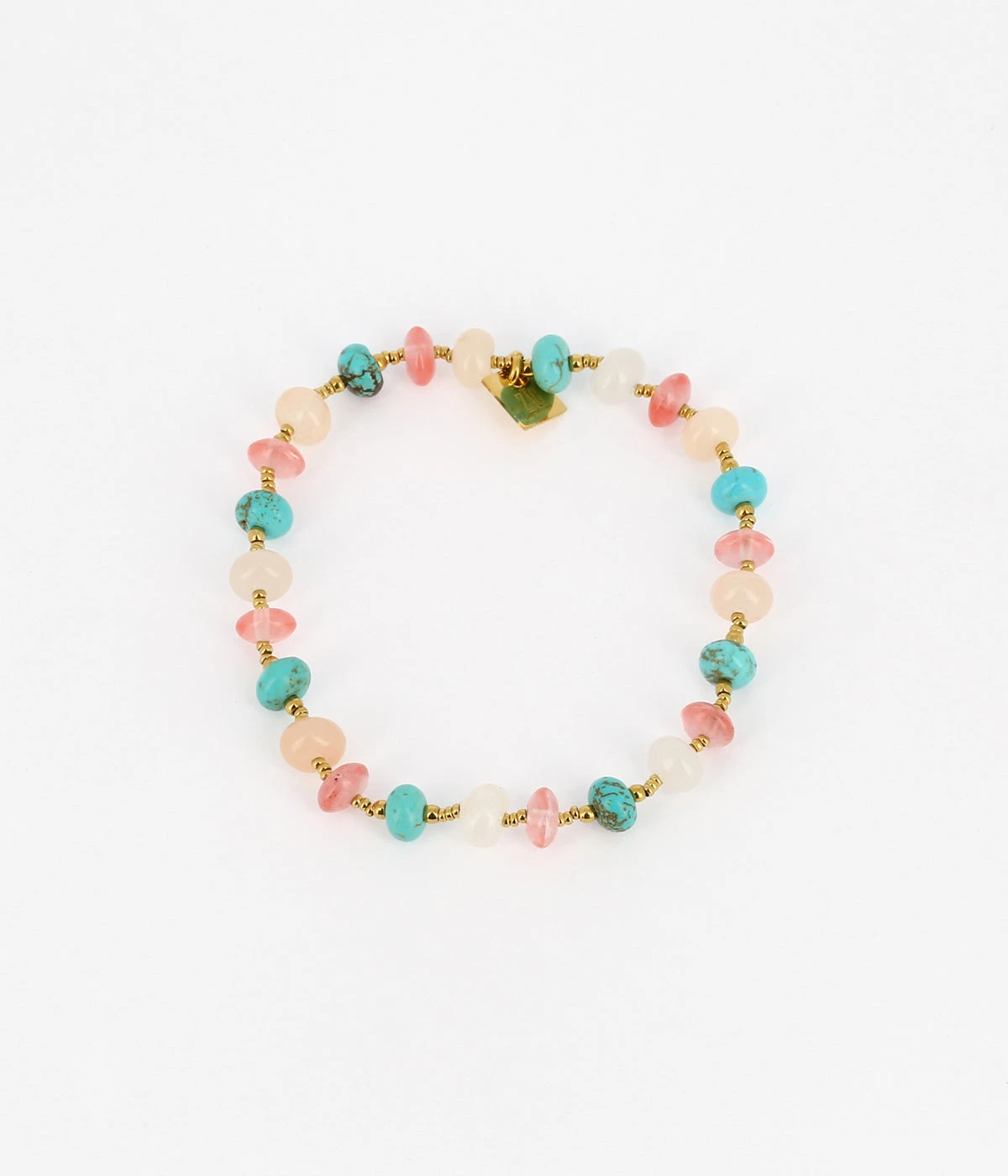Lumineux et estival, ce petit bijou est parfait porté en accumulation avec d’autres bijoux de nos collections sur votre poignet.