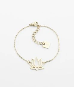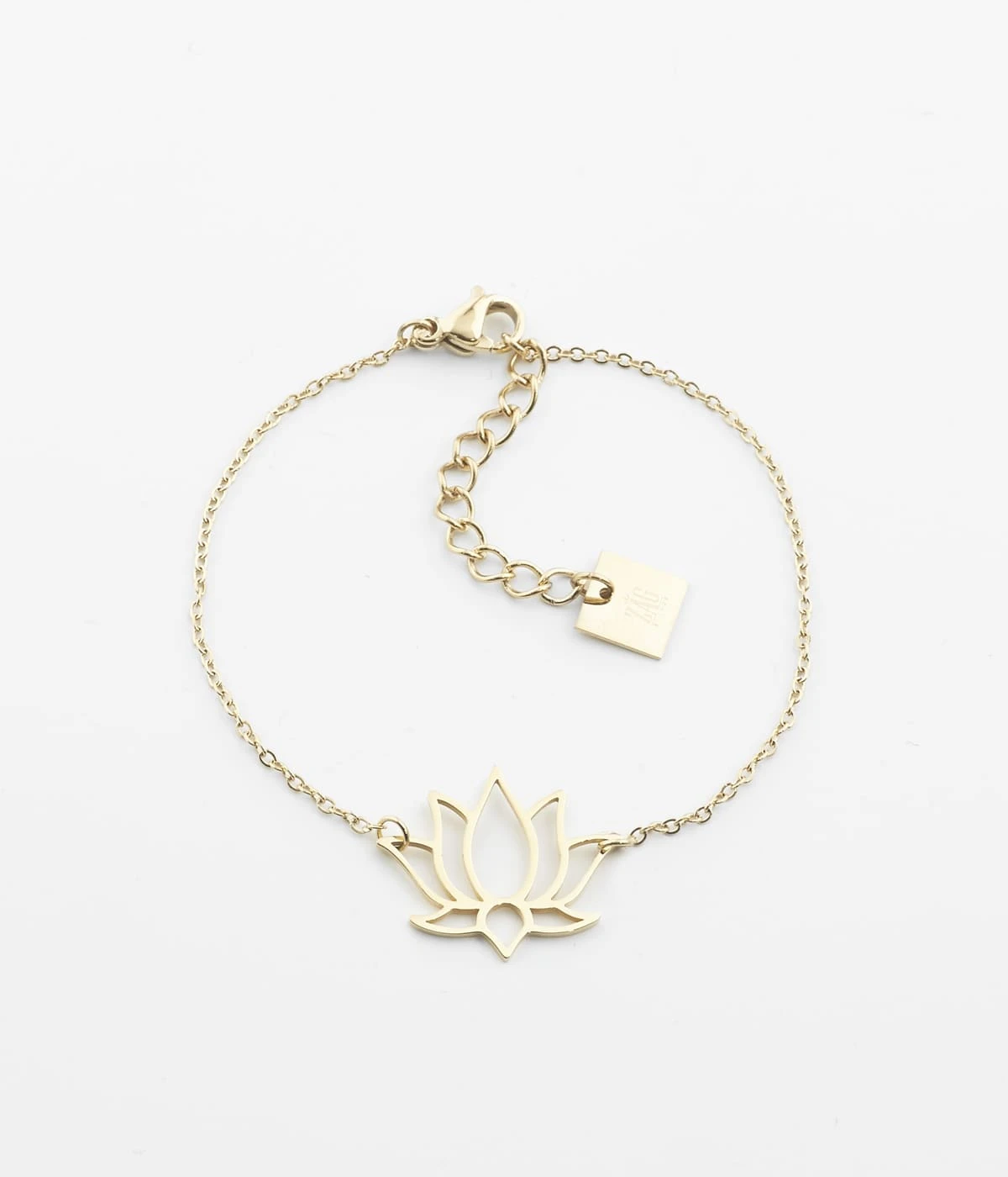 Bracelet chaîne en acier uni ou doré à l’or fin, arborant une fleur de lotus finement découpée.