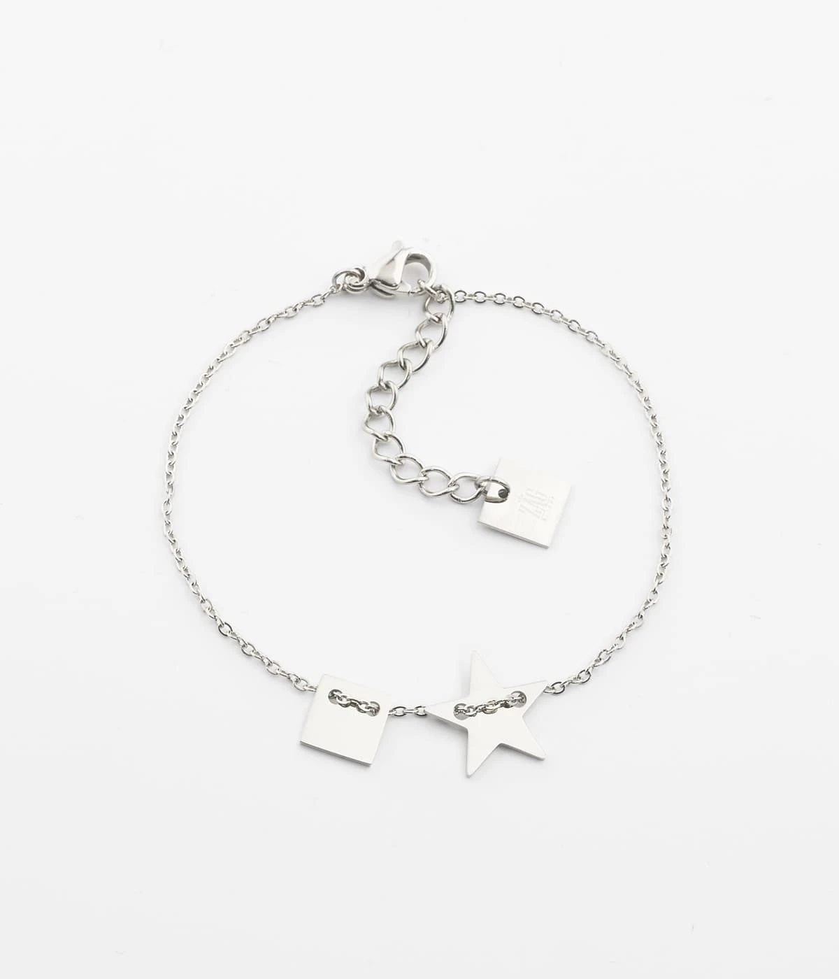 Confrontation d’une étoile et d’un carré pour ce bracelet chaîne en acier uni ou doré à l’or fin.