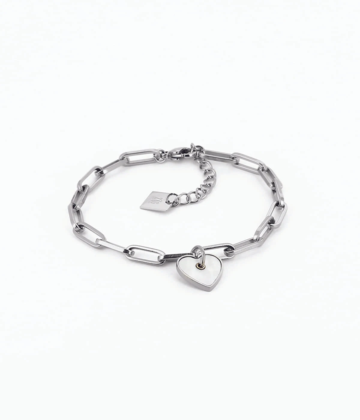Bracelet chaînette sur lequel est attaché un petit cœur en nacre.