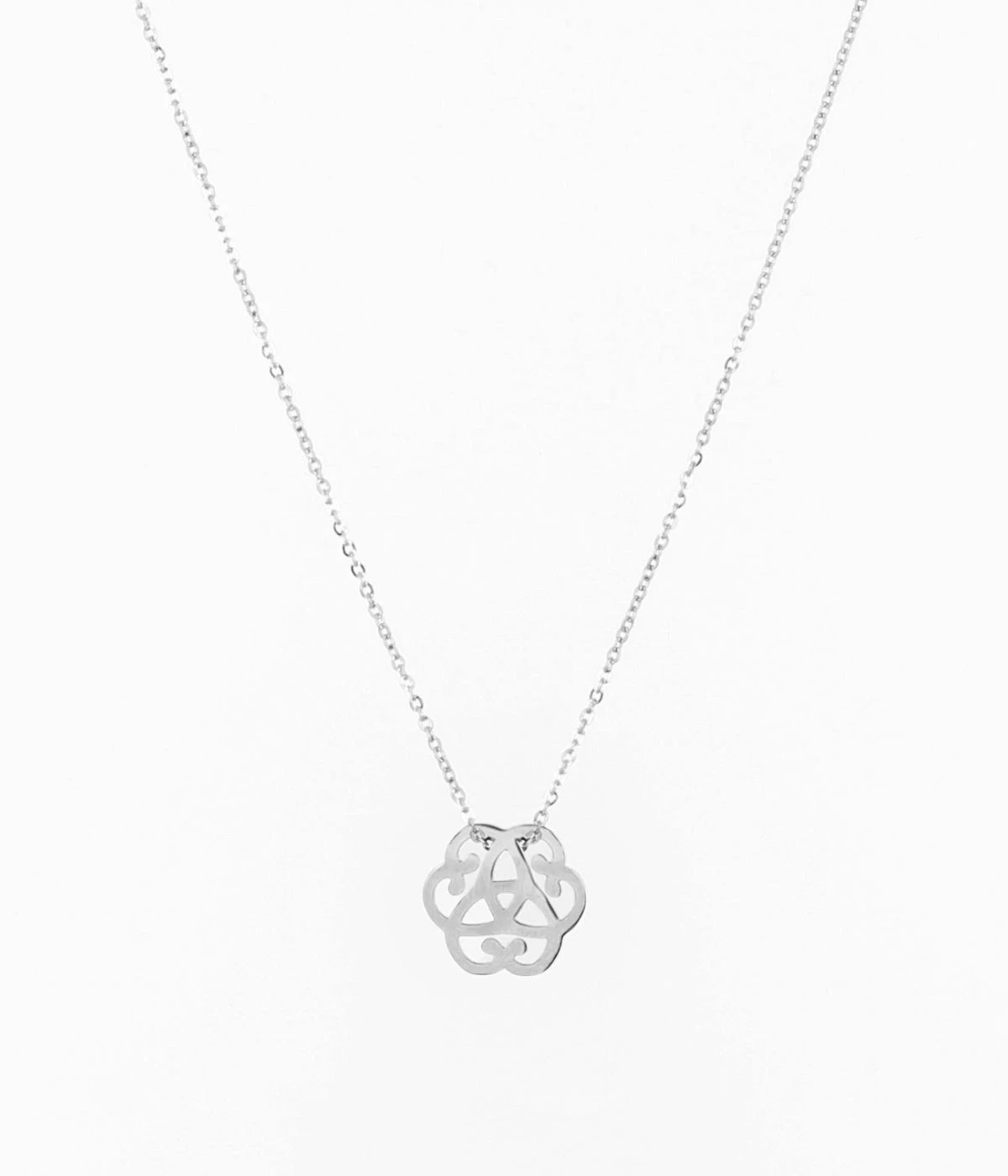 Collier en acier uni ou doré à l’or fin présentant un motif d’arabesque en son centre.
