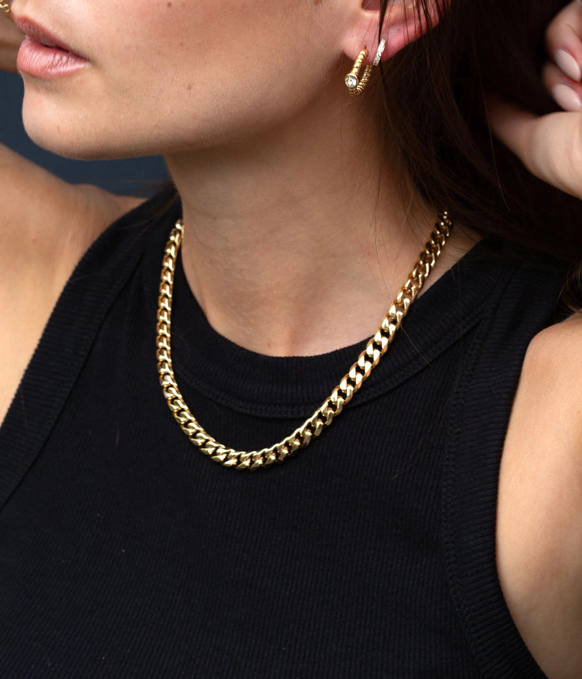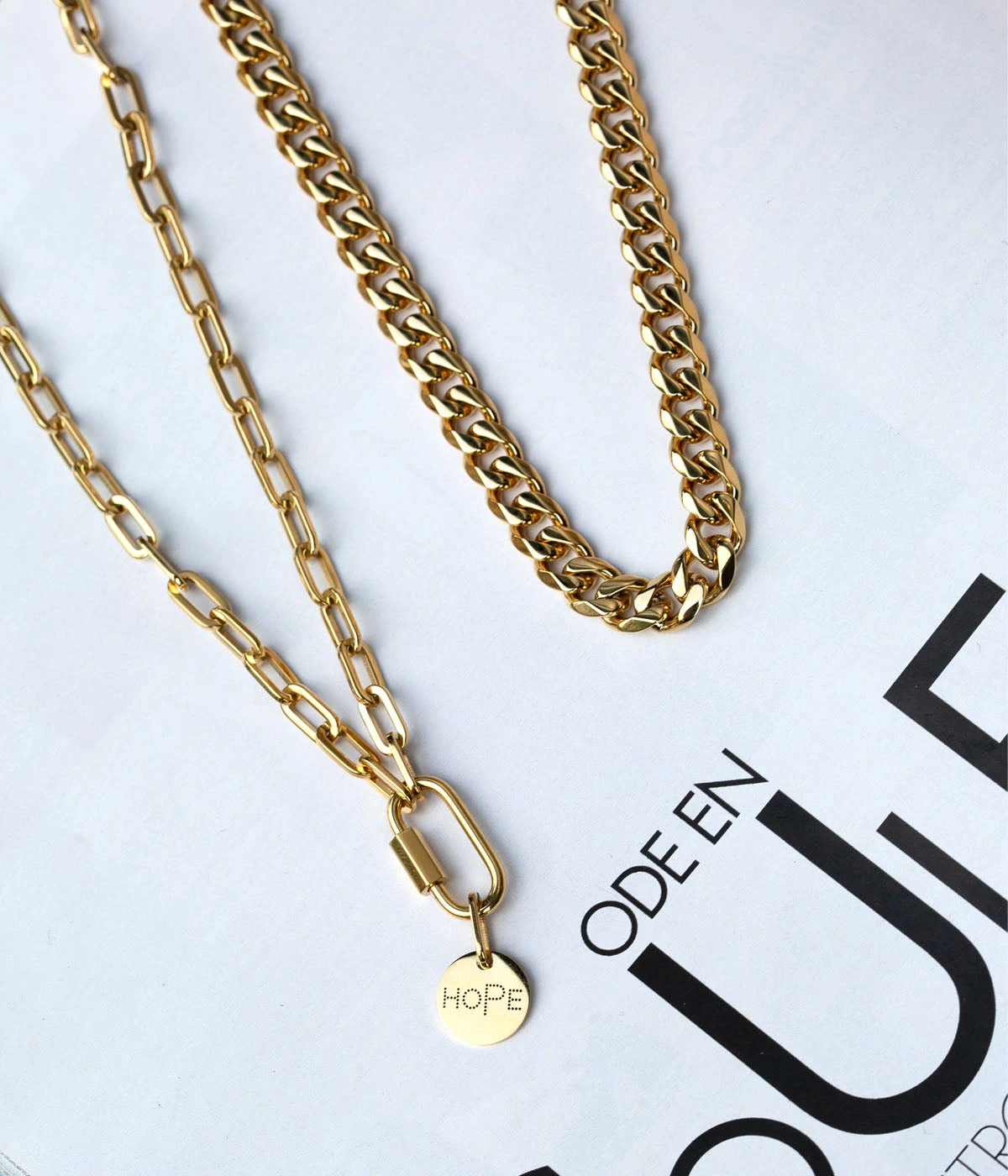 Collier maillons en acier uni ou doré à l’or fin.
