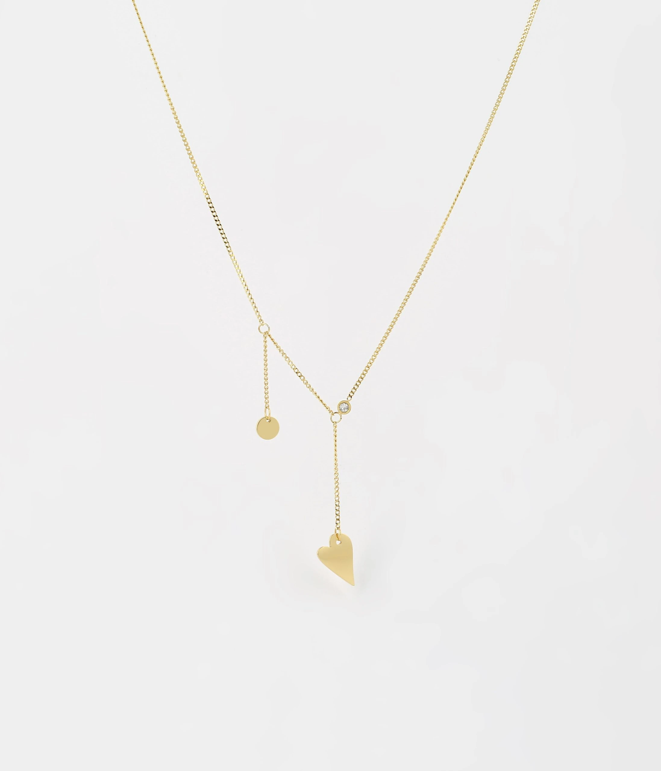 Collier en acier uni ou doré à l’or fin sur lequel sont suspendus des pendentifs de forme géométrique.
