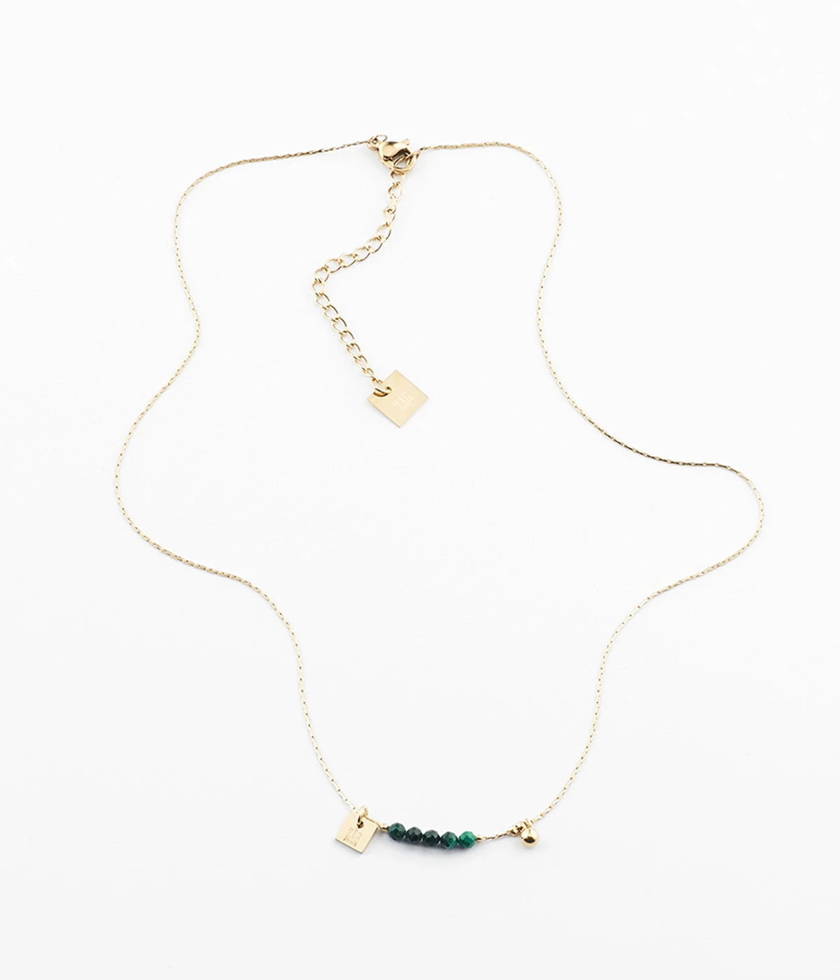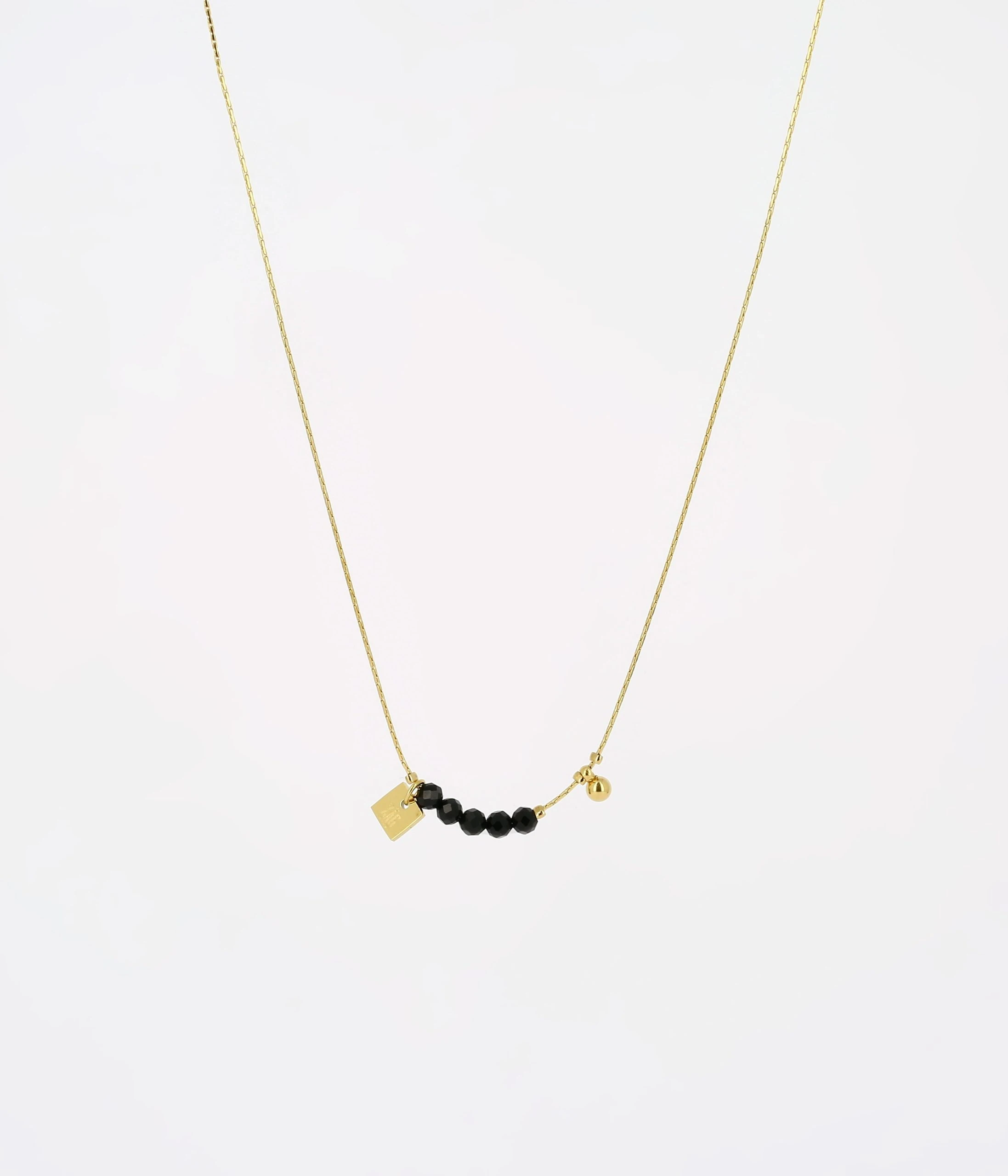 Collier en acier doré à l’or fin sur lequel des perles de pierres naturelles sont enfilées dans un camaïeu de couleurs.