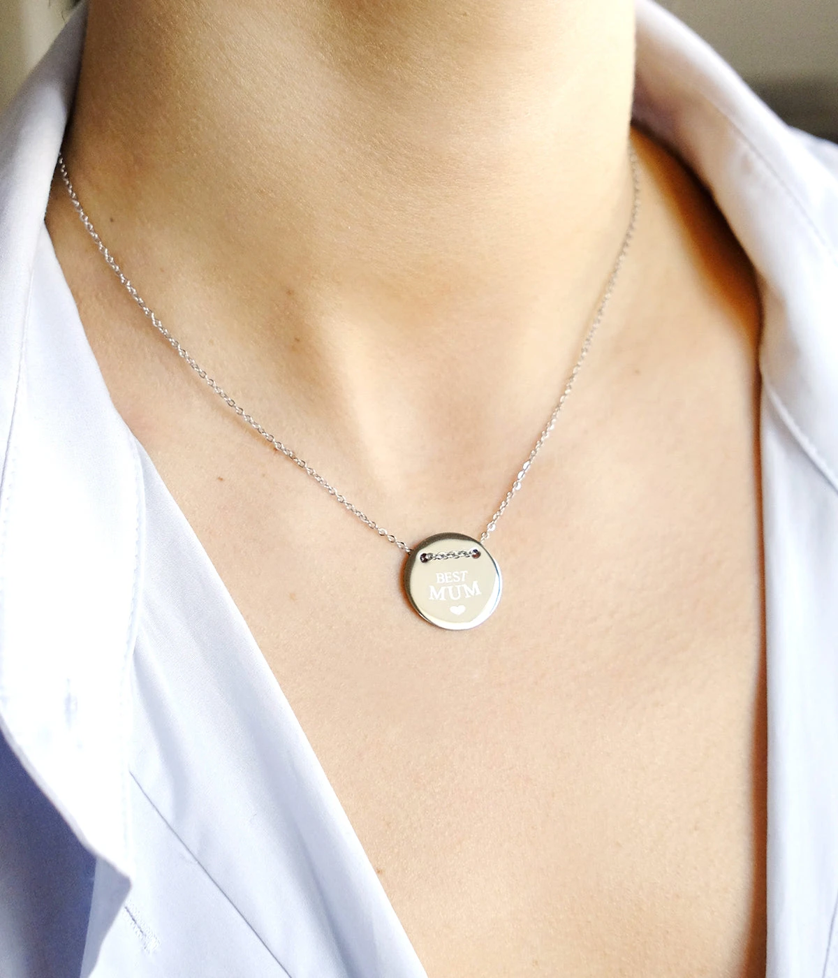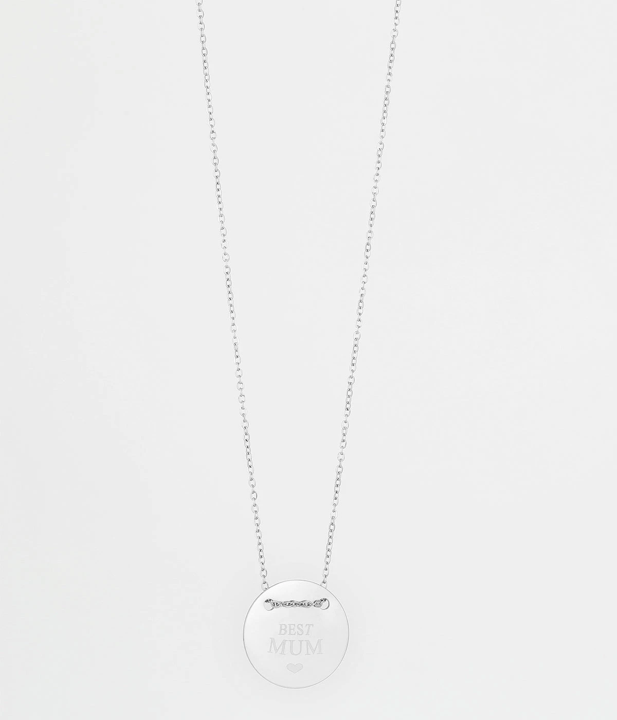 Collier en acier uni ou doré à l’or fin sur lequel une médaille gravée du mot « Best Mum » est attachée.