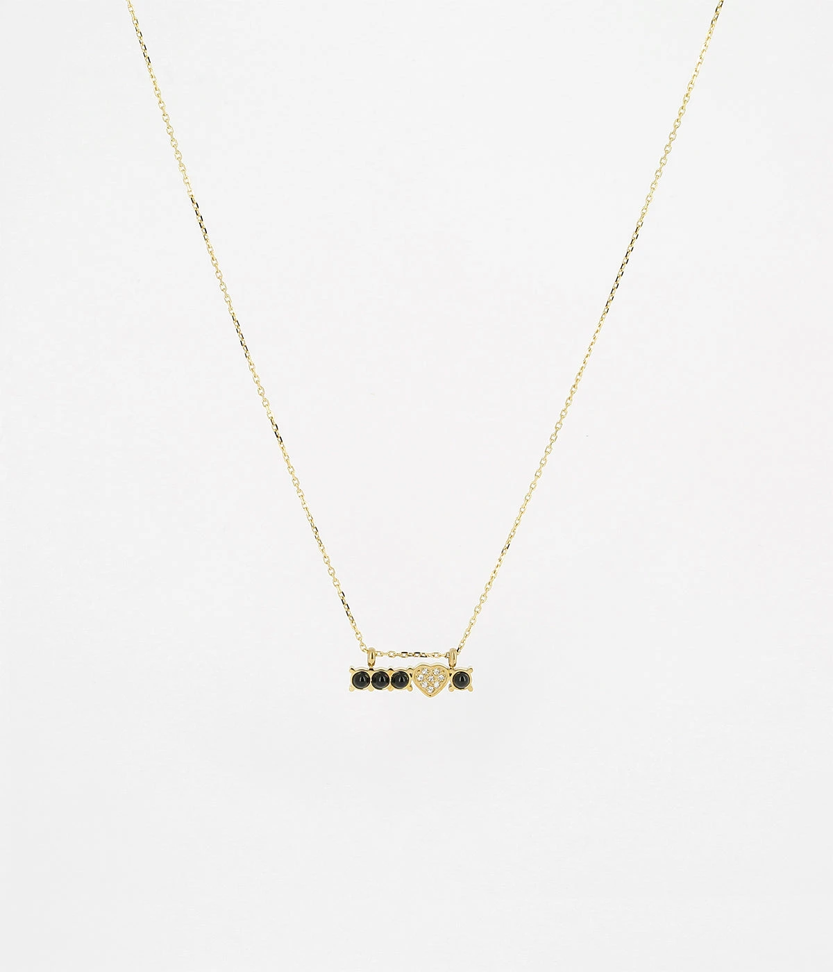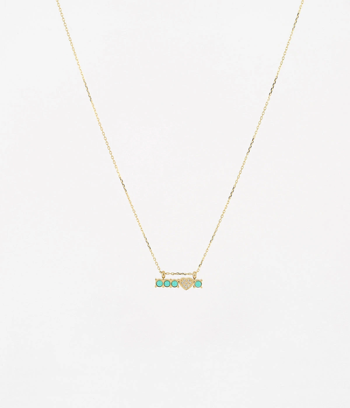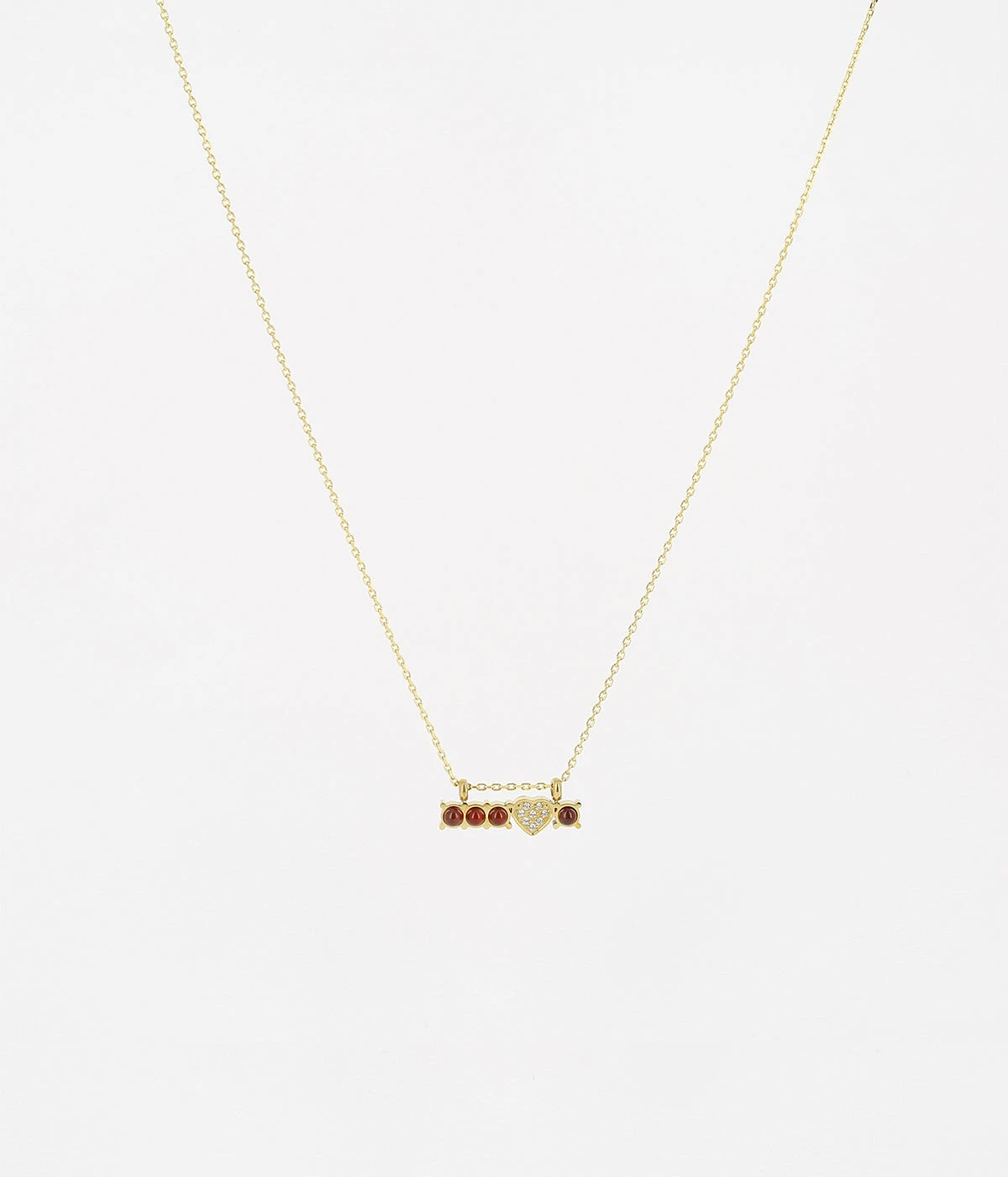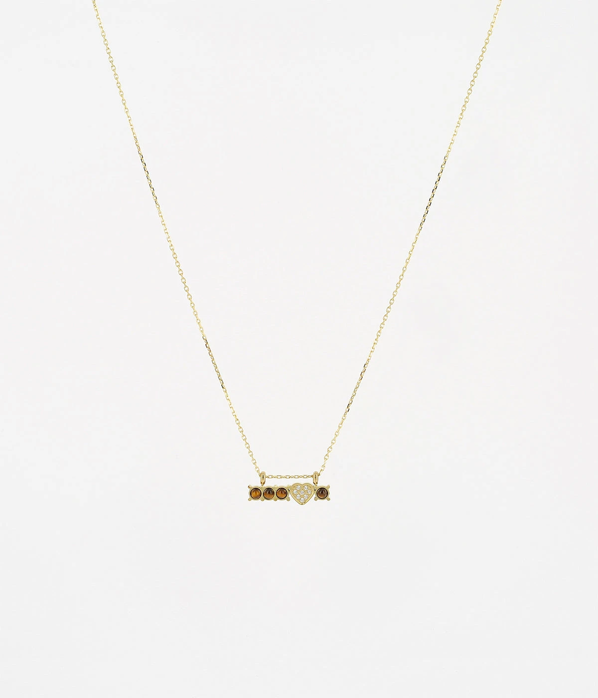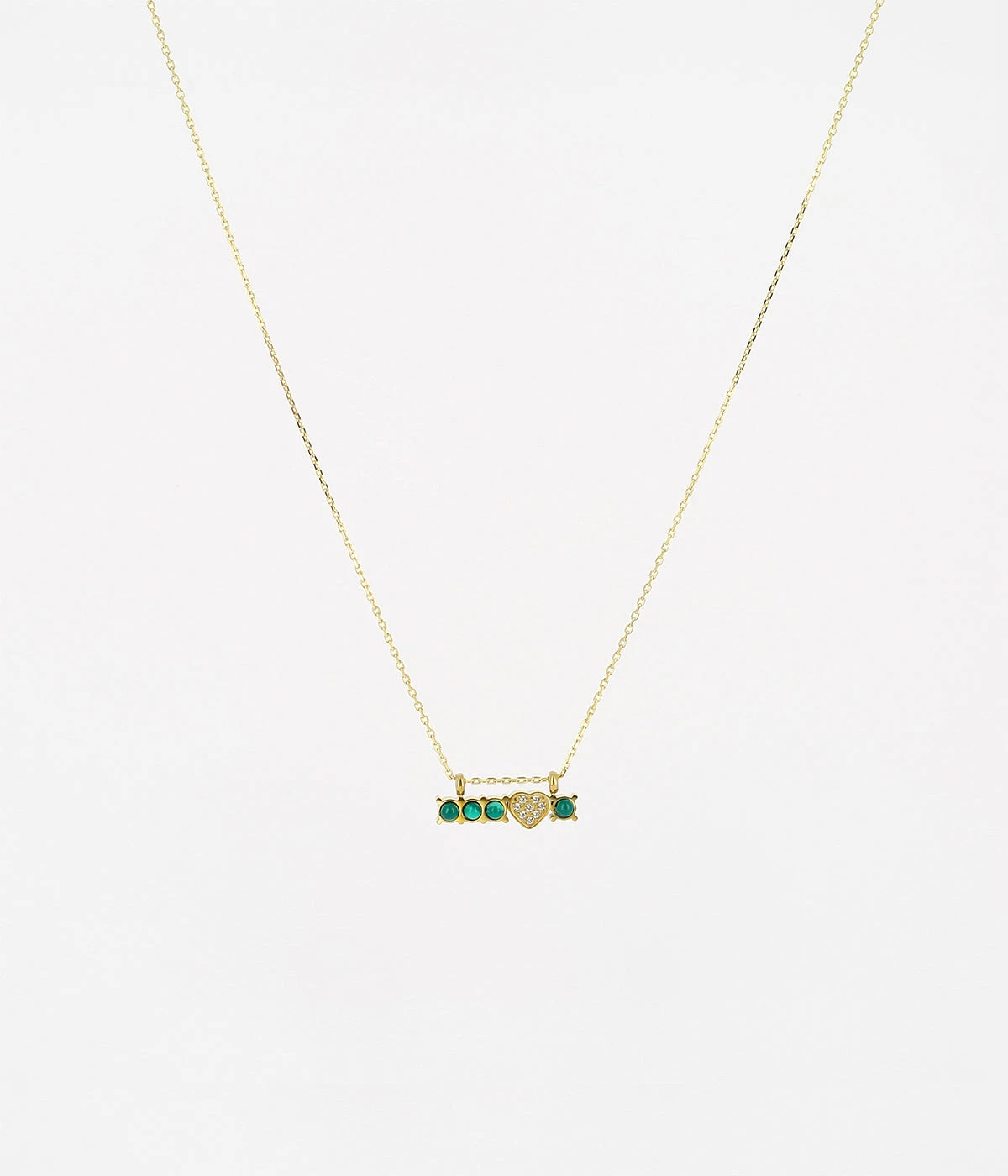 Collier en acier doré à l’or fin sur lequel est suspendue une rangée de pierres naturelles et un cœur serti de zirconiums.