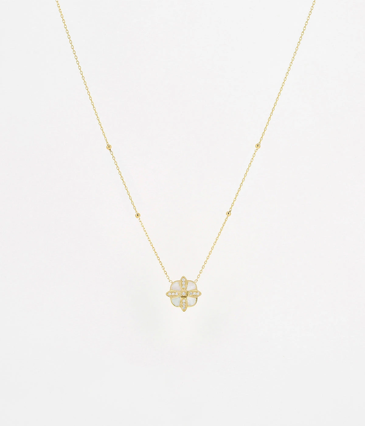 Collier en acier uni ou doré à l’or fin constitué de pierre naturelle formant un motif floral.