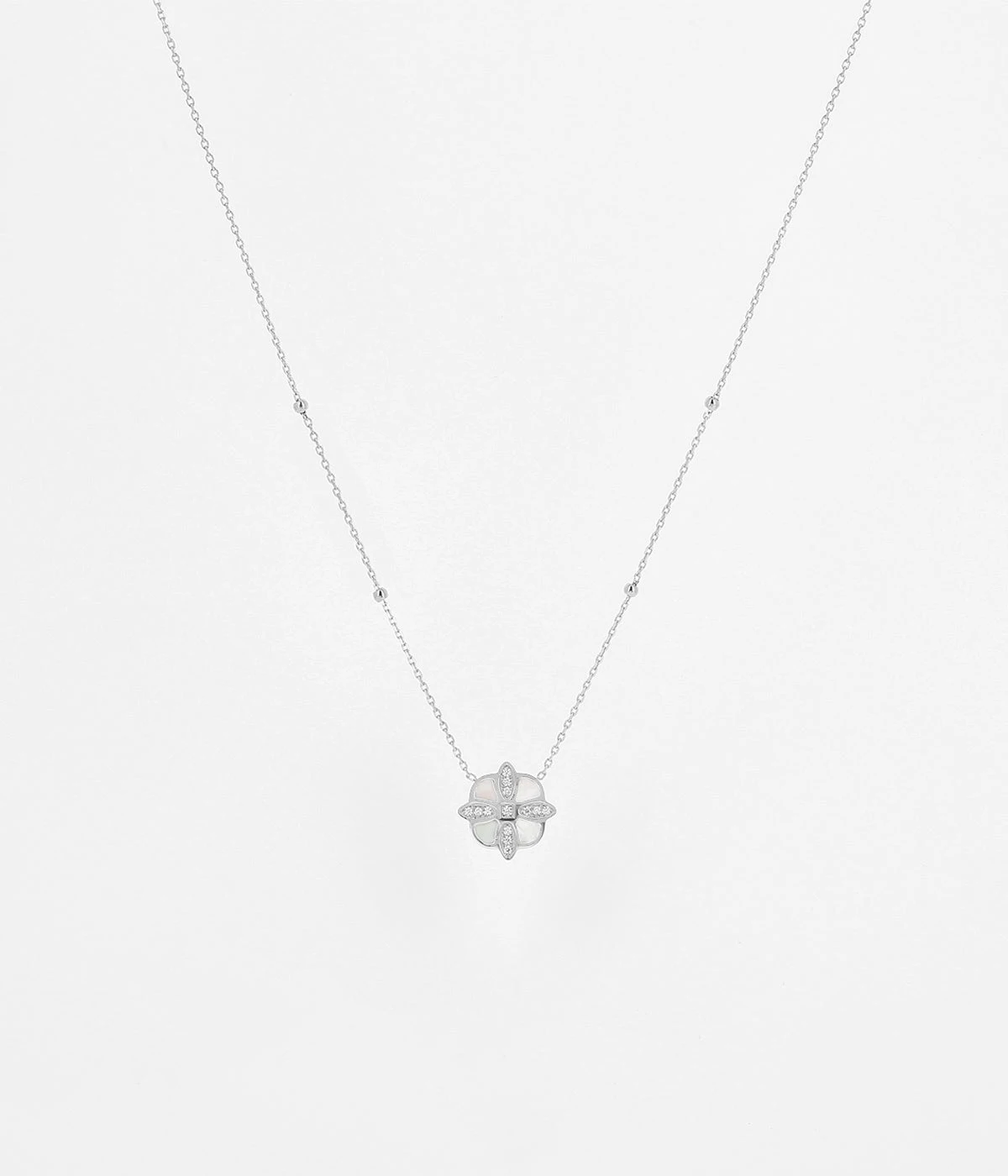 Collier en acier uni ou doré à l’or fin constitué de pierre naturelle formant un motif floral.