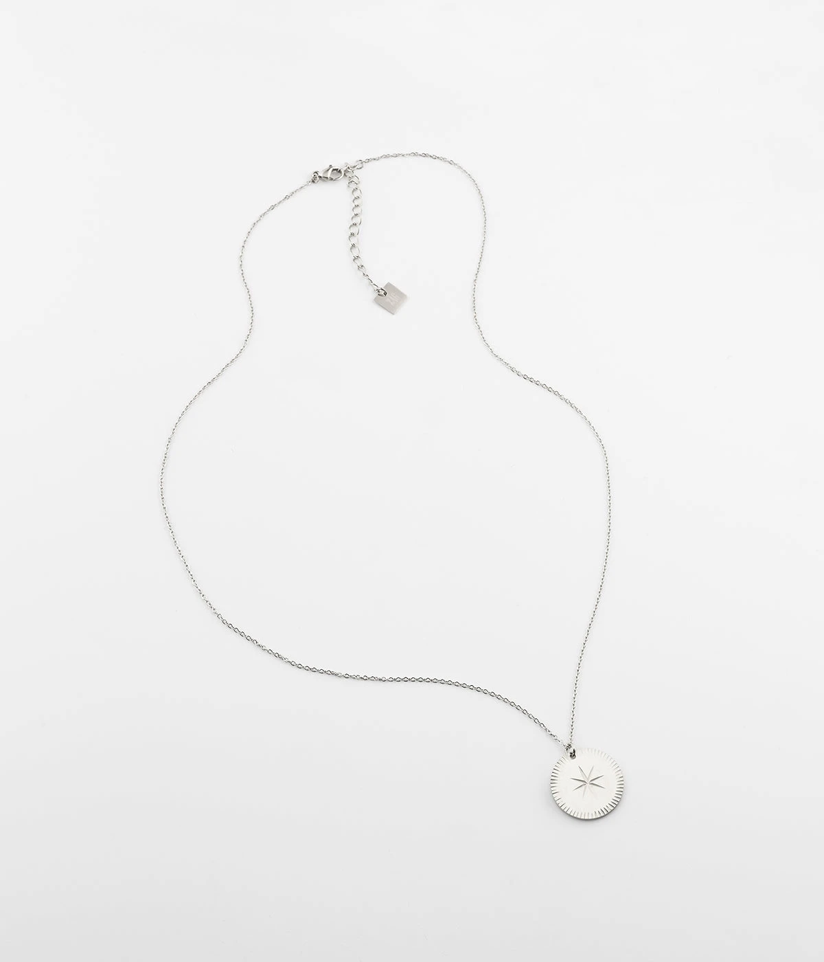 Collier chaîne en acier uni ou doré à l’or fin sur lequel est attachée une médaille finement gravée d’un motif astral.