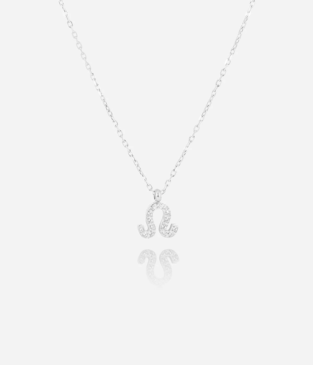 Collier en acier uni sur lequel se trouve un pendentif représentant le signe du zodiaque Lion, serti de zirconiums.