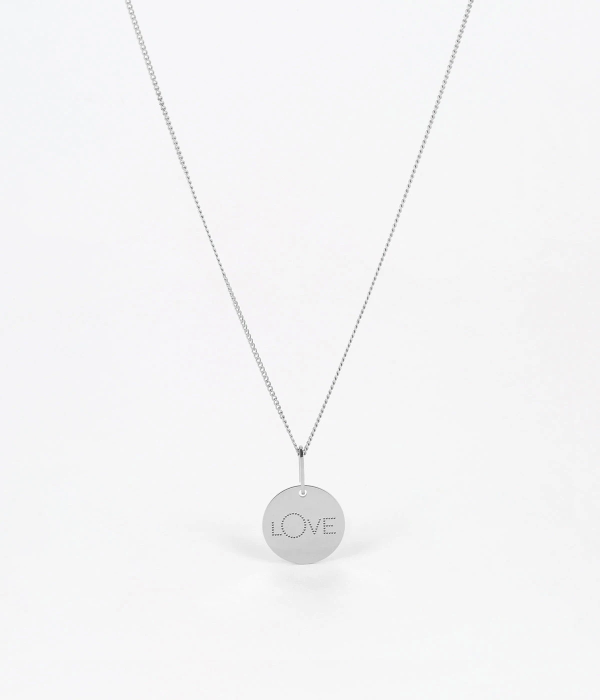 Collier chaîne en acier uni ou doré à l’or fin sur laquelle une médaille gravée du mot « Love » est attachée.