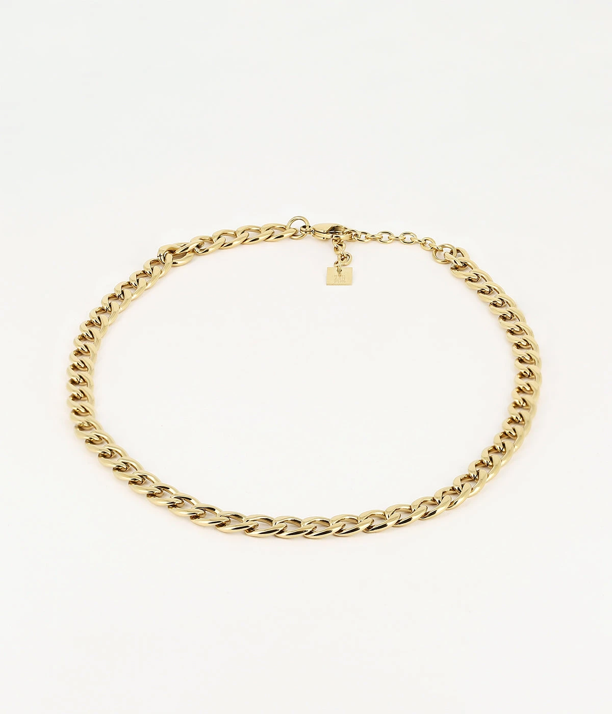 Collier à maillons en acier uni ou doré à l’or fin.