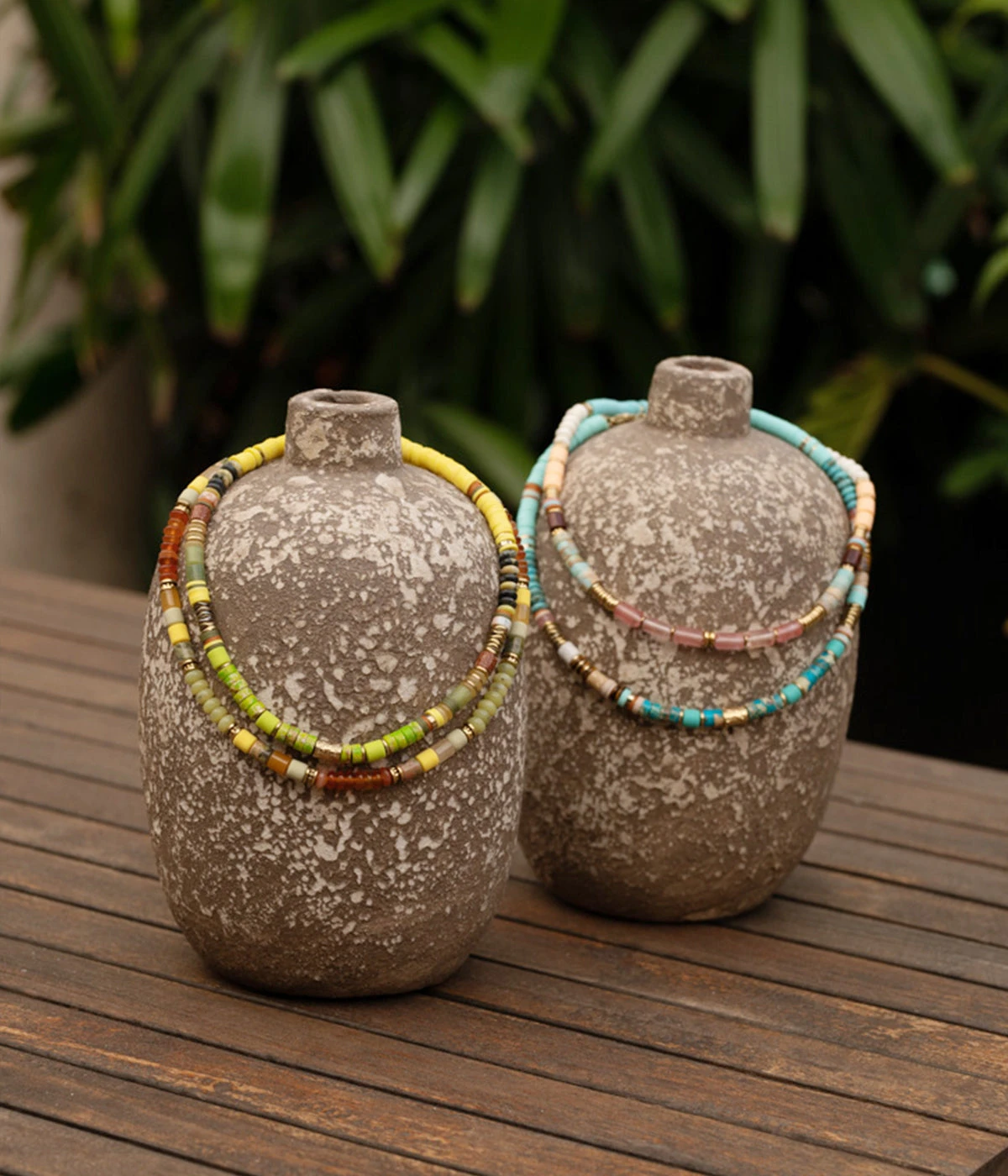 Nous conseillons de le porter avec d’autres colliers de nos collections pour créer un look estival.