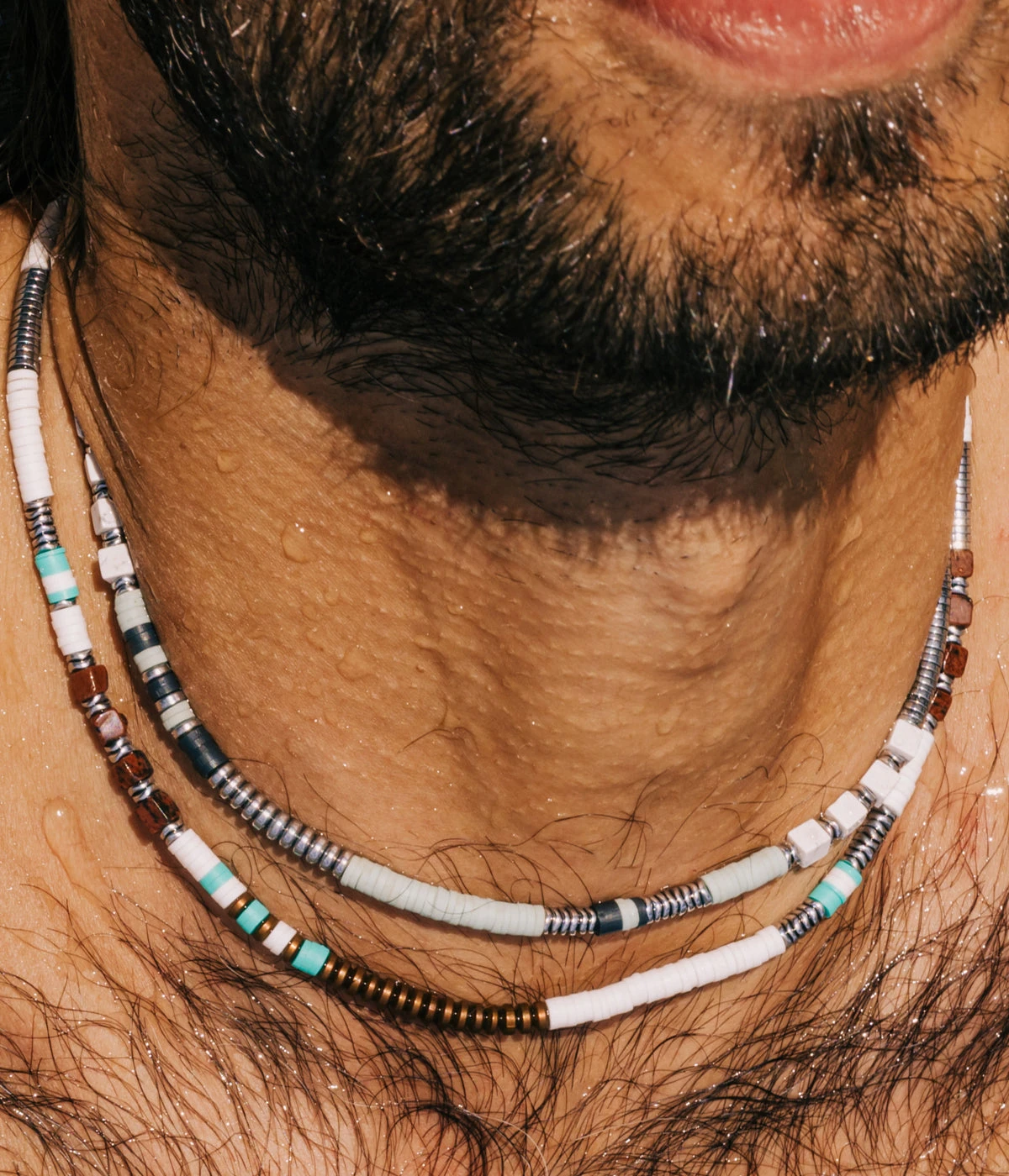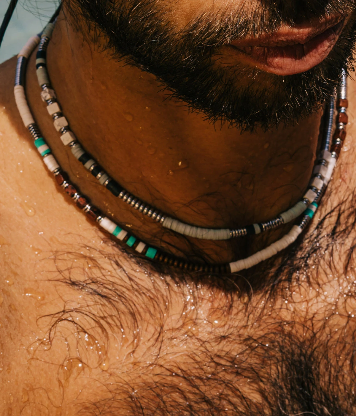 Ce collier dans le style surfer se mélange avec tous les autres colliers de notre collection masculine.