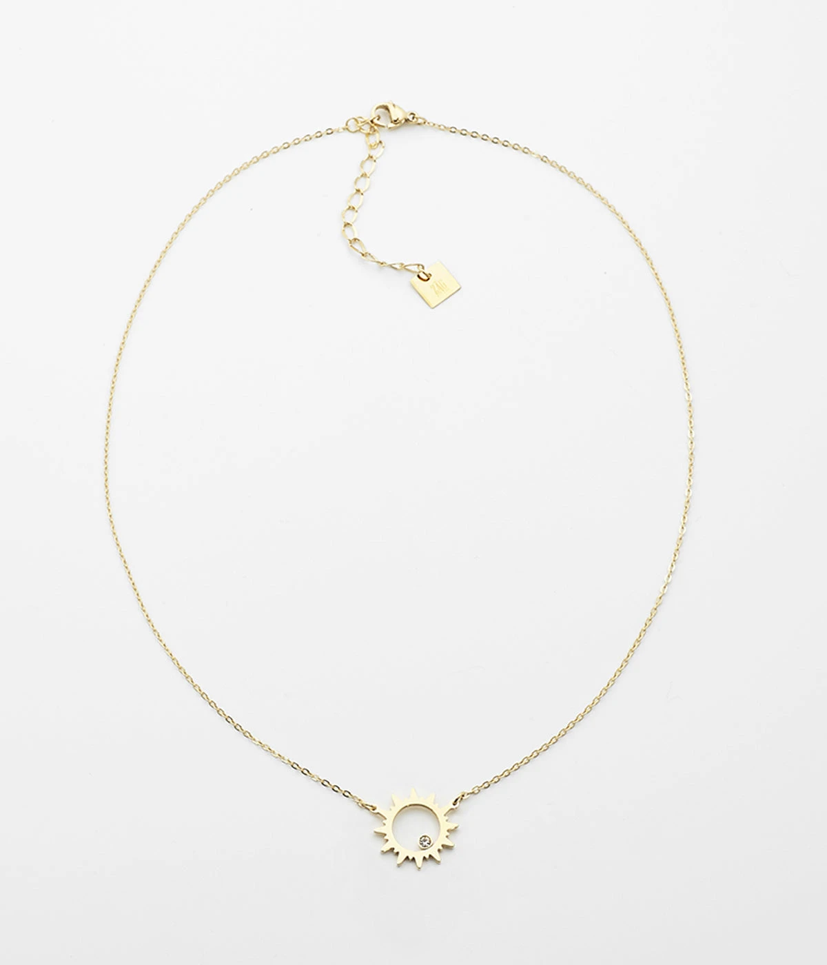 Collier chaîne en acier uni ou doré à l’or fin arborant un motif de cercle à petits picots avec un zirconium en son centre.