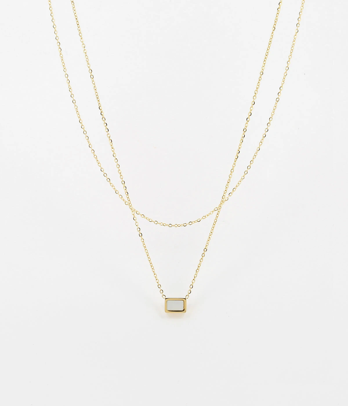 Collier multi-rangs en acier doré à l’or fin sur lequel est attaché un pendentif nacré.
