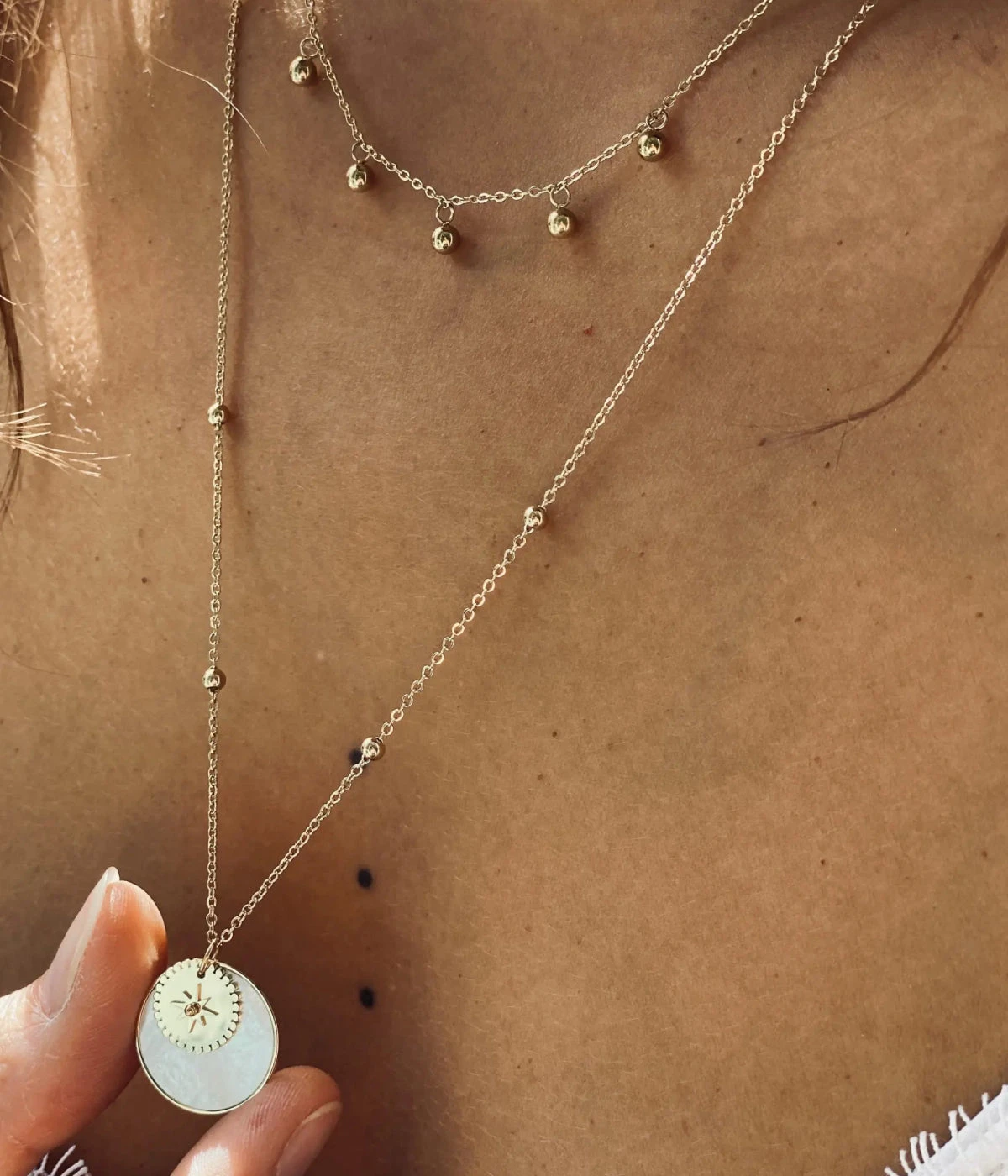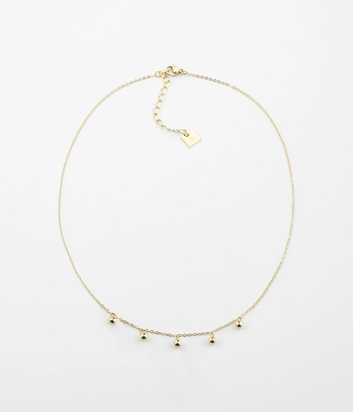 Collier chaînette en acier uni ou doré à l’or fin parsemé de petites boules de métal.