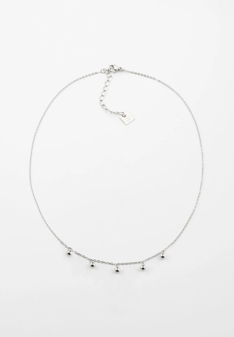 Collier chaînette en acier uni ou doré à l’or fin parsemé de petites boules de métal.