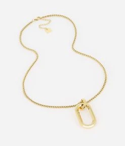 Collier en acier uni ou doré à l’or fin sur lequel est suspendu un pendentif rectangle.