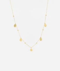 Collier en acier uni ou doré à l’or fin sur lequel sont suspendues des pampilles en métal en forme de goutte d’eau.