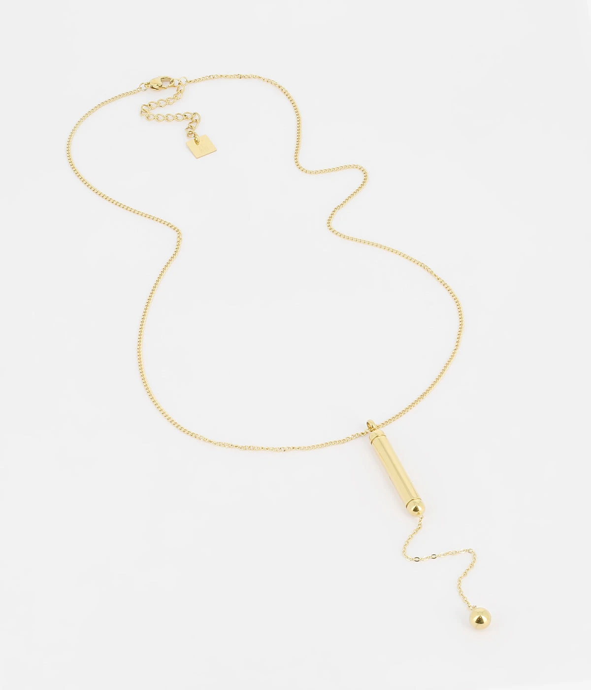 Collier médium en acier uni ou doré à l’or fin sur lequel est suspendu un pendentif de forme géométrique.