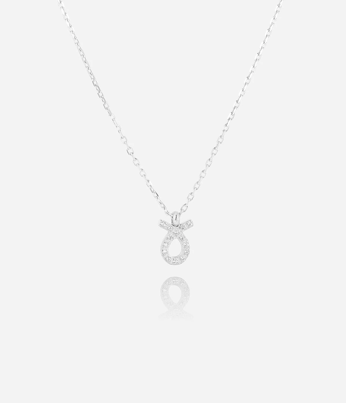 Collier en acier uni sur lequel se trouve un pendentif représentant le signe du zodiaque Taureau, serti de zirconiums.