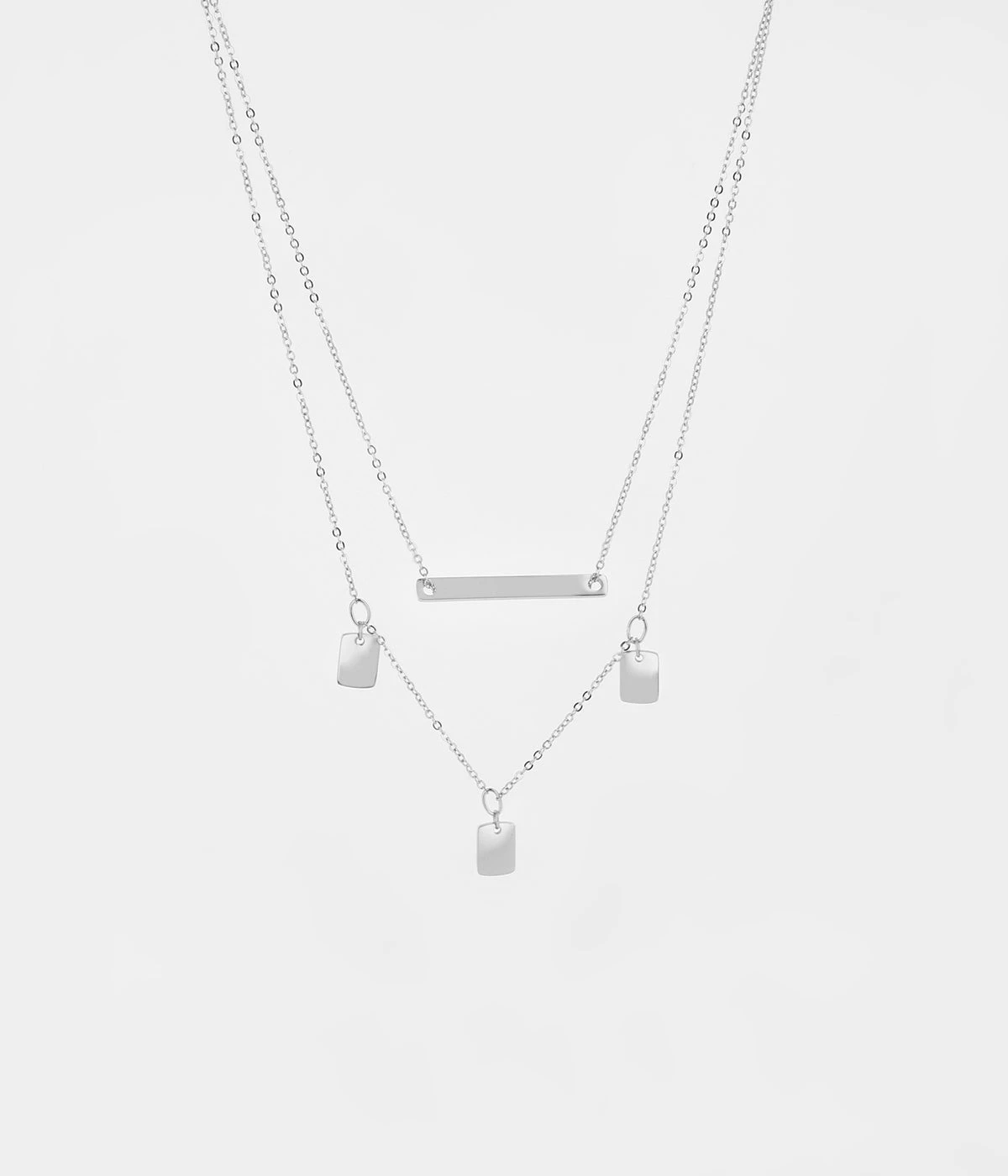 Collier double chaîne en acier uni ou doré à l’or fin.
