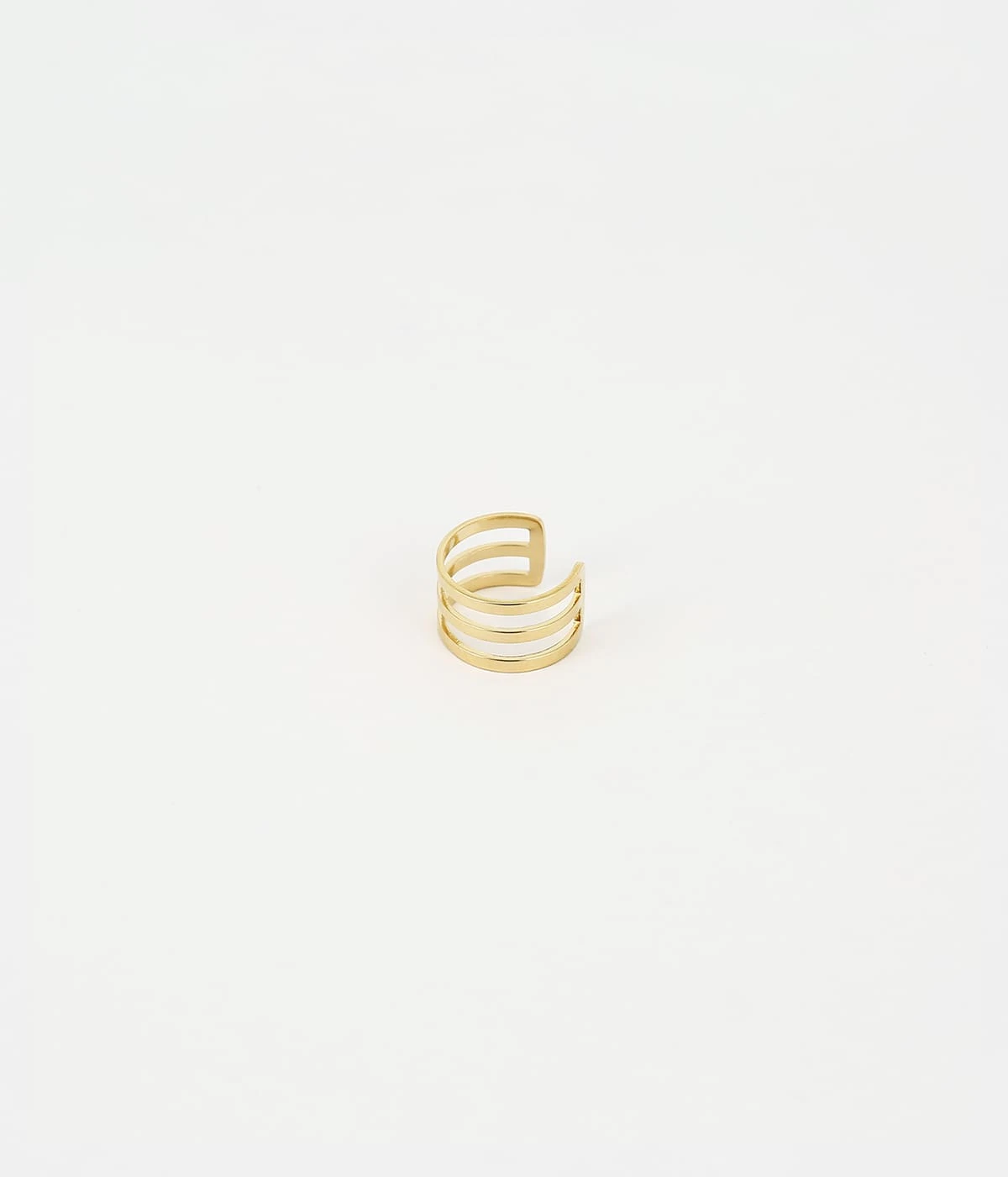 Earcuff en acier uni ou doré à l’or fin, qui s’ajuste sur le haut de l’oreille et se porte mélangé avec d’autres boucles d’oreilles de nos collections.