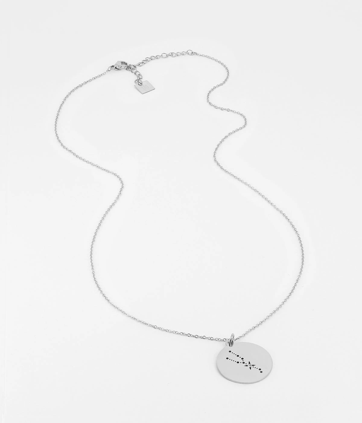Collier en acier uni ou doré à l’or fin sur lequel est suspendu un pendentif gravé de la constellation représentant le signe astrologique Taureau.